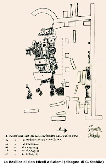 aisles, an apse on the west side and presented a narco on the east was also a destination as evidenced by the numerous funeral tombs found on pavimento.Lo excavation revealed identified three phases, from newest to oldest, with the letters A, B and C. A phase remains on the most recent phase of the church are very scarce. The most interesting element is composed of a mosaic fragment found in the eastern half of the nave bearing the Latin inscription "... ... MPORIBUS NTIFICIS Patris Bishops' ... OMINUS ... DO ... NORIS ... F. .. Ioli ... EC ...". The epitaph contains perhaps the allusion to a [p] ontificis Bishops' patris [opi]. Based on the design of the building the Peace attributed this phase to the sixth century. B dCFase This second time the basilica is characterized by another mosaic floor that was discovered beneath the mosaic with the inscription in Latin: it is characterized in its western half by a geometric pattern of squares and octagons containing stylized floral motifs and in his mid- Eastern irregular quadrilaterals interspersed with diamonds, this part of the mosaic floor is also home to five entries, four of which bear Greek and Latin names of likely benefactors of the church and Kobouldeos Maxima, Zosimos, Saprikios, Makarios and Dionisius.Sulla first inscription reads "Kobouldeos Maxima split the vote and for the salvation of their children." Particularly interesting is the name Kobouldeos widespread in the Christian communities of North Africa and means "Quod Deus vult". This in my opinion shows that African teams in the late Roman era were still present in the western part of the island and that probably contributed to the spread of Christianity in these zone.La second inscription reads "The priest Macarius for the salvation of Kobouldeos. The type of inclusion appears to be a funeral but the loss of stratigraphic data can not be say this with certainty. This fragment of mosaic and refers to the restoration work, the latter, according to Pace, it could be referred either to the tomb of Kobouldeos built by the priest or to a restoration of Makarios wanted by Macario floor to honor the memory of the founder of the basilica (Kobouldeos? ). In the third inscription reads, "Remember, O Lord, your servant saprice" The name of this nell'epitaffio comes from greek "sapròs" "putrid" and is a rather common name among the early Christians who used it for humility derogatory names. According to the Peace that this inscription is that of Zosimos were funerary in nature while the Salinas were invocations the community. To me, the first hypothesis is more likely, because the text seems to speak of a clear desire by the faithful to rely on the verge of death at the hands of Dio.L 'unique funerary inscription is certain to Dionisius that says "The priest lived Dionisio 55 years in peace. "This second phase is due to the fifth century. dCSia the combination of mosaics and funerary inscriptions and the names are found in inscriptions from North Africa. The quality of the lower level floor of the basilica of Salemi, however, betrays a bill that made use of local African models circulating at that time in the western Mediterranean. (source: Giuseppe Stabile)