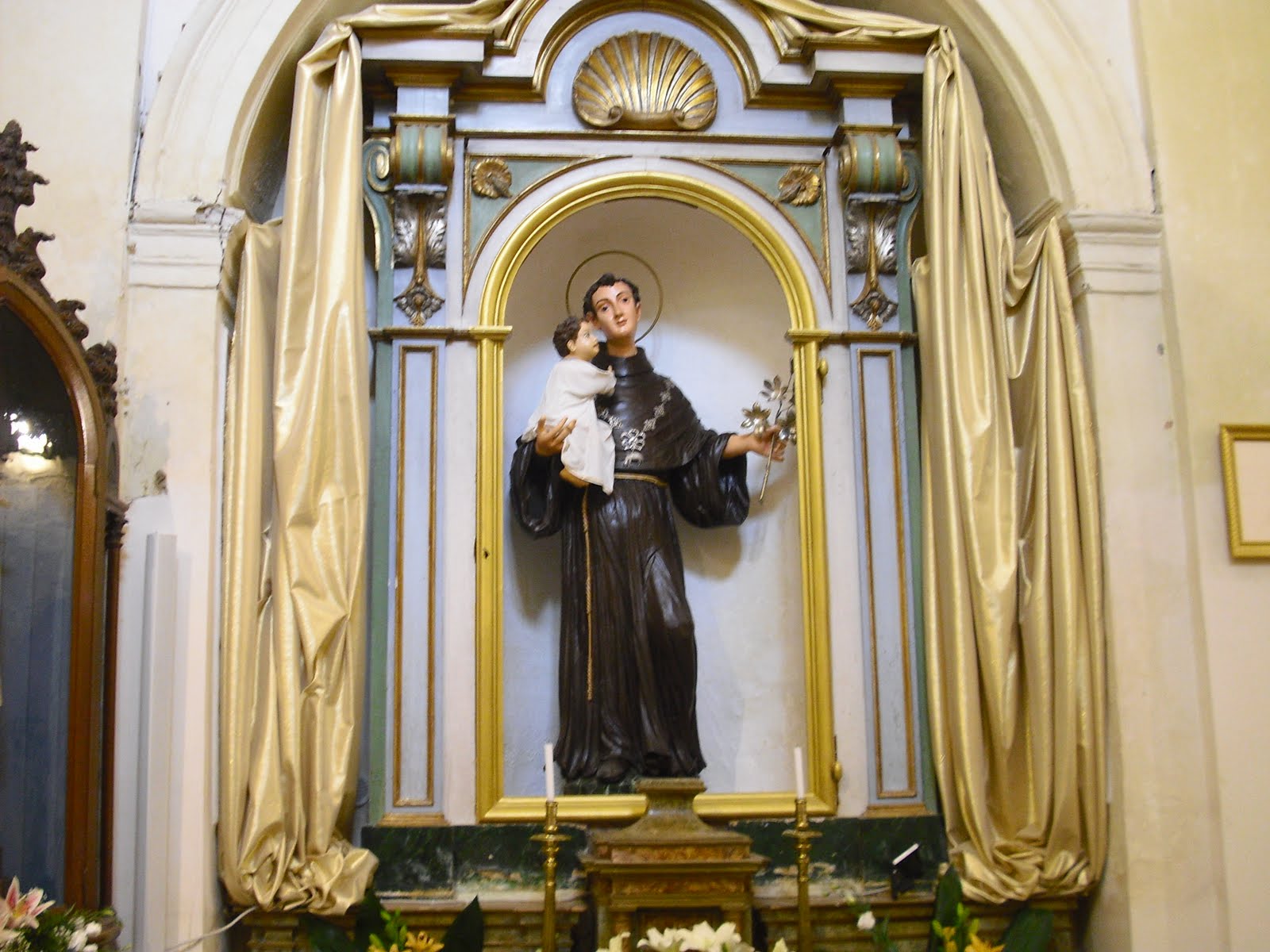 Today the church is linked to the Matrix The statue is placed in the first altar on the right, then there is the Madonna, and finally the Ecce Homo, on the left side we have the S. Francis, in following a cross (maybe from the church del Carmine). The church has a nave There is a strong devotion to St. Anthony of Padua, and by entering you can still see remnants of old buildings. (see photo on the page massively images of churches)